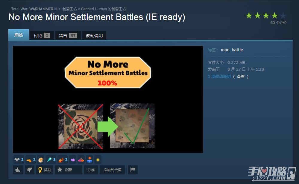 MOD名称:No More Minor Settlement Battles (IE ready)