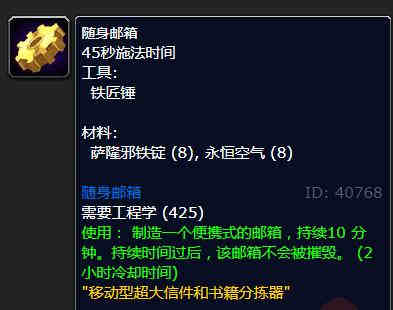 在到达对应工程等级后,玩家找对应的工程学训练师即可学习随身邮箱。