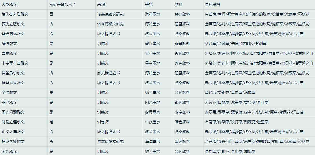 《魔兽世界》怀旧服WLK圣骑士雕文所需材料一览