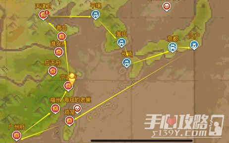 路线1:天津卫-平壤-釜山-京都-鸡笼-广州-福州-青岛