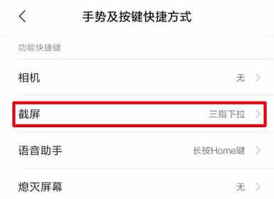 5、在“手势及按键快捷方式”中找到“截屏”,点击进入。