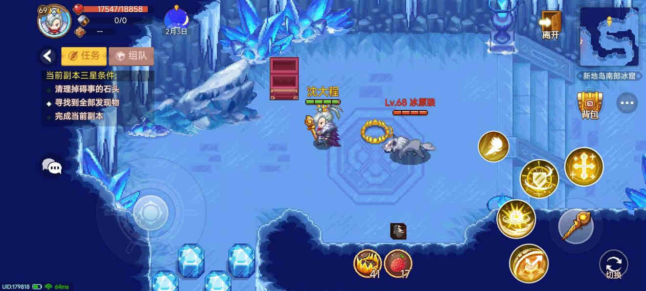 新地岛南部冰窟:狼4、矿蜗牛4、岩蛙4、眼睛蛇4、食人花4、魔岩石人4