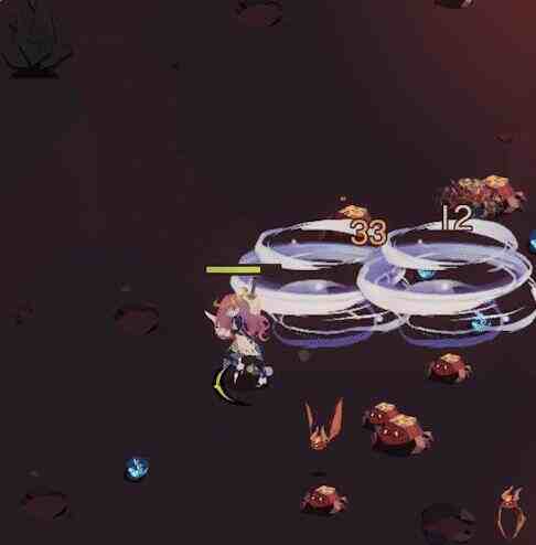 效果:角色面朝方向生成一道龙卷风,完全穿透敌人且附带一小段击退效果。