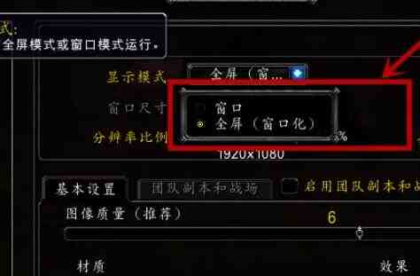 4、然后,完成上述步骤后,可以看到两种模式:窗口和全屏,设置为全屏或窗口模式;