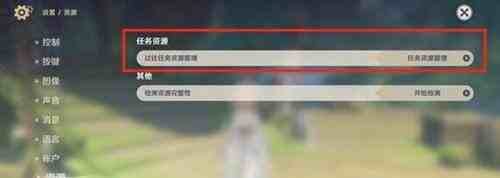 2、在游戏界面中找到【设置——资源——任务资源】;