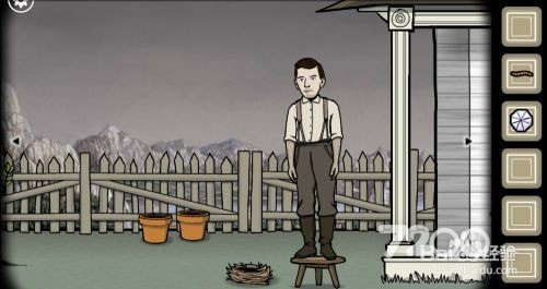4、将树枝交给男人(James),并将板凳移到他的脚下,让他拿树枝将屋顶上的鸟窝碰触下来