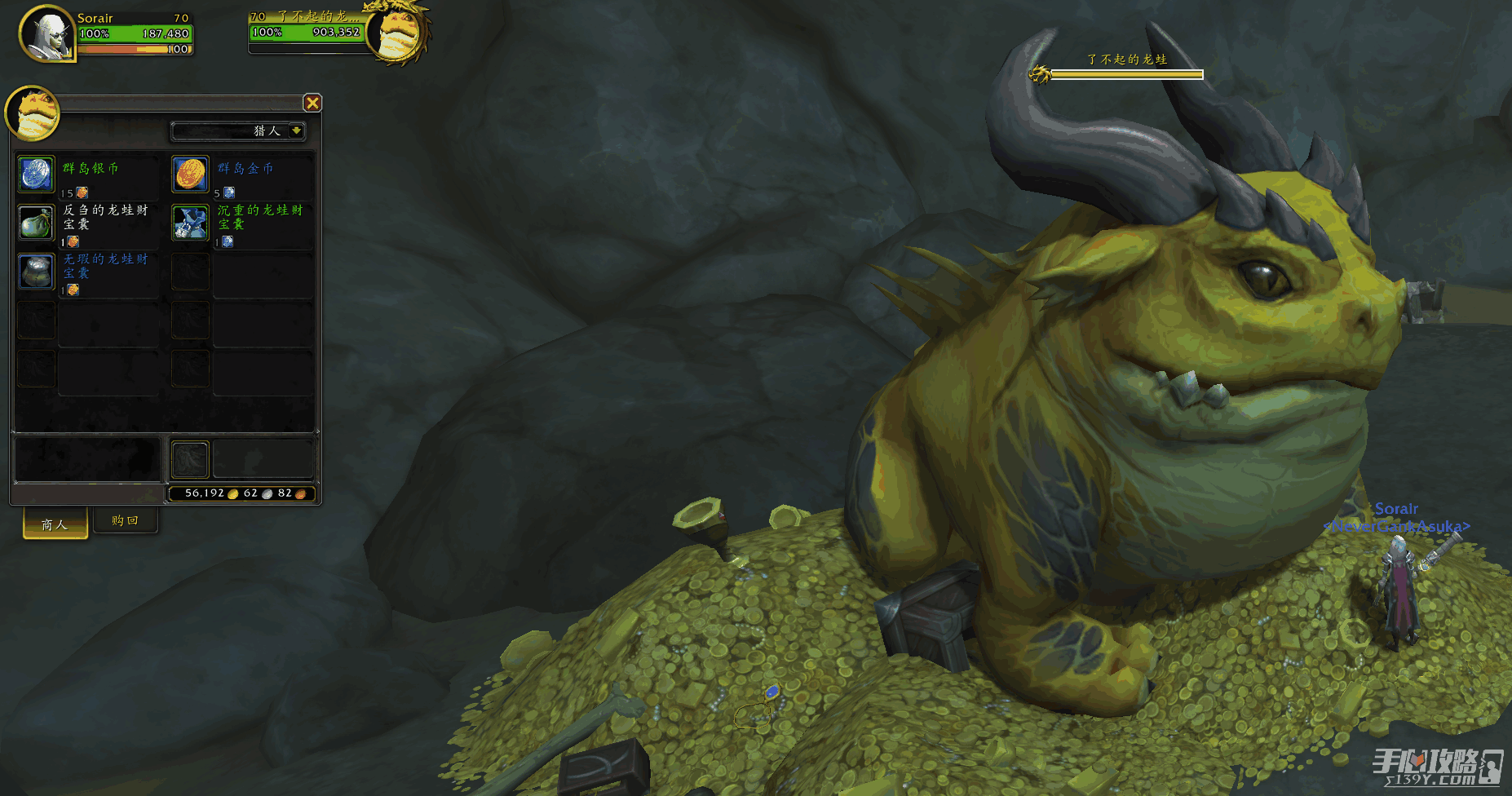 反刍的龙蛙财宝囊可以开出:数个巨龙群岛普通鱼类+1巨龙群岛优秀品质宝石,有时也能开出装绑绿装。