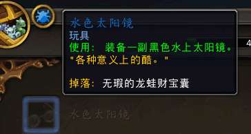 无暇的龙蛙财宝囊可以开出玩具:水色太阳镜,效果是装备一副黑色水上太阳镜。