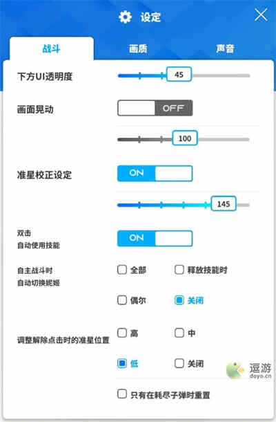 3.画面晃动的体验很差,推荐直接关闭掉,另外自动切换角色也建议关闭,AI操作很差。