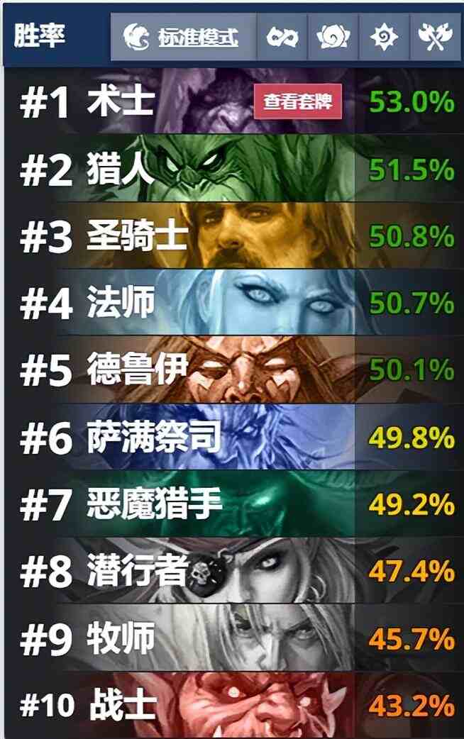 《炉石传说》因为版本变动频繁,每次登顶的职业和卡组都不太一样,但是有些卡组是一直都比较有出场率的比如跳费德、大奖贼、纳迦牧等等,而这些卡组甚至在职业赛场上也拥有着不低的出场率,所以如果尘比较少的玩家,可以选择这种相对稳定的卡组。