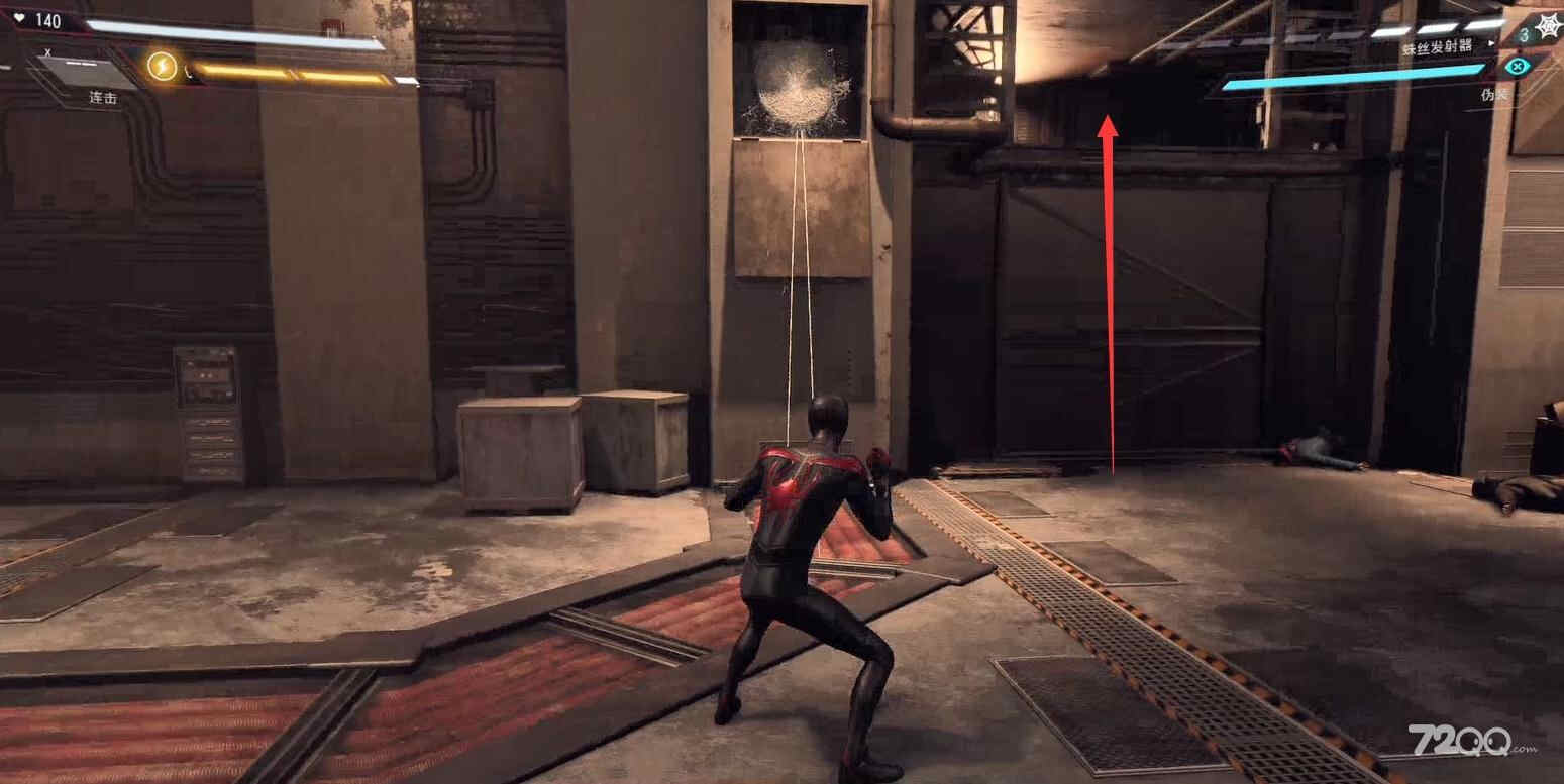 拉开电梯井的门,用蛛网固定住,然后去追猫咪。