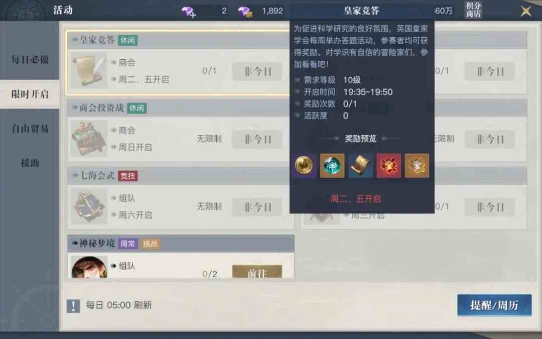 1、参与皇家竞答,积累日常活跃度,解锁白银密令奖励,提升各大地区的探索度,可以轻松囤起一船舱的地中海宝图。