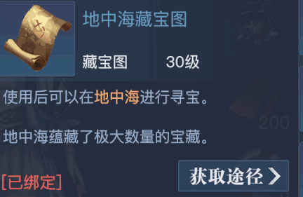 1、各位冒险者在等级到达30级之后,才能在背包中点击使用地中海藏宝图,跟随指引探险寻宝。