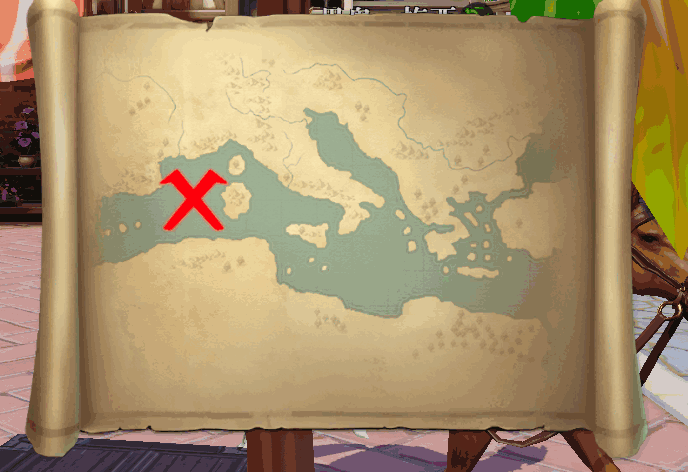 1、使用地中海藏宝图,会自动前往目的地挖取宝藏。宝藏地点都在塞维利亚附近海域,所以挖宝前需拖航至塞维利亚。