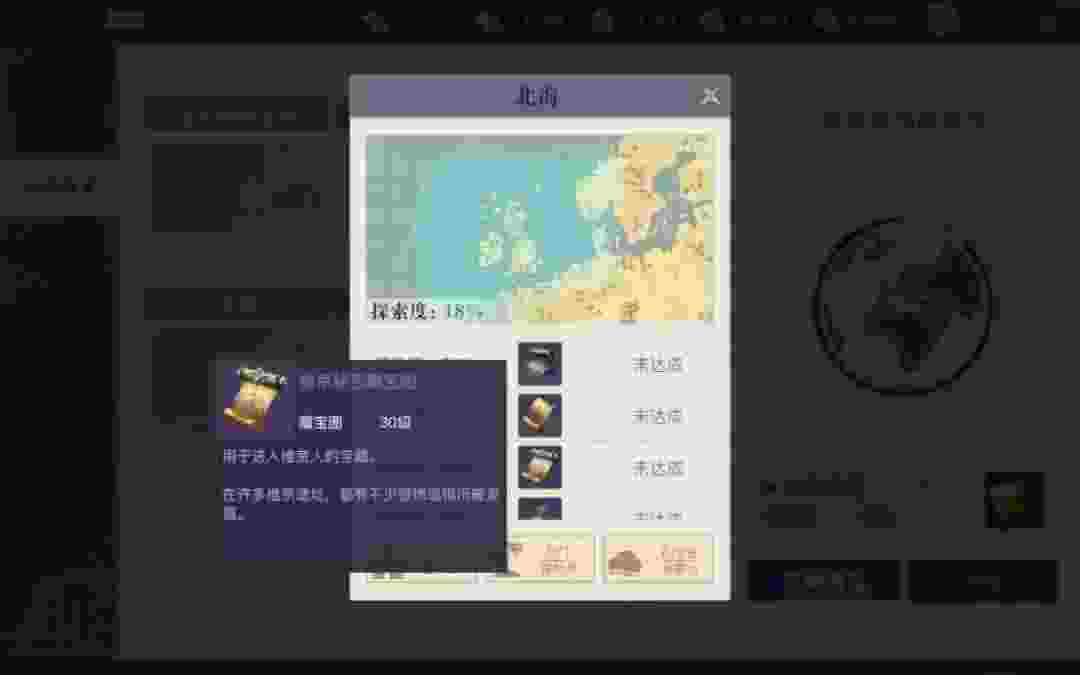 2、紫色的所罗门王藏宝图、维京秘宝藏宝图、圣米格尔藏宝图,需要寻宝者的东地中海探索度、北海、非洲西部探索度到达60%才能破解藏宝图的宝藏线索。