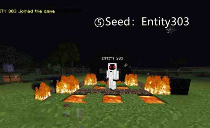 3、Seed:Entity303;在303种子中,通过一个特定的召唤阵,可以召唤出303。然而,请神容易送神难,召唤出303后,这位玩家在游戏中迅速的被实体303杀死了;