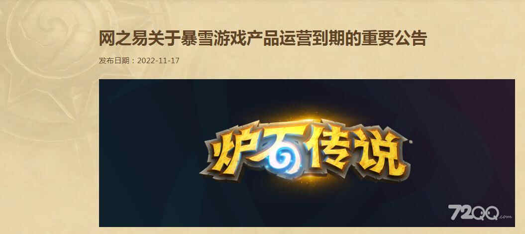 《炉石传说》网易运营停服公告