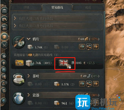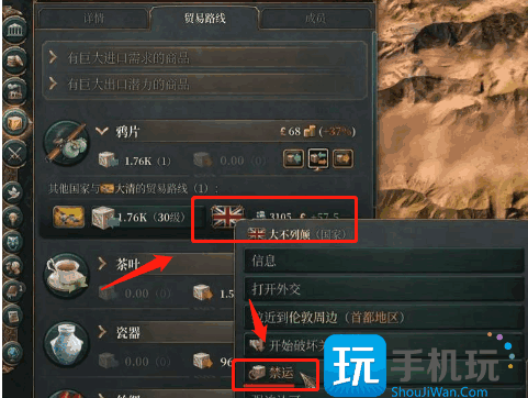 2、首先玩家在贸易路线找到出口贸易的国家,点击鼠标右键会弹出该国家的一些选项。