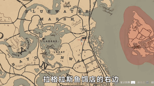 在监狱岛左边,拉格拉斯鱼饵店右边,如图所示标点位置。