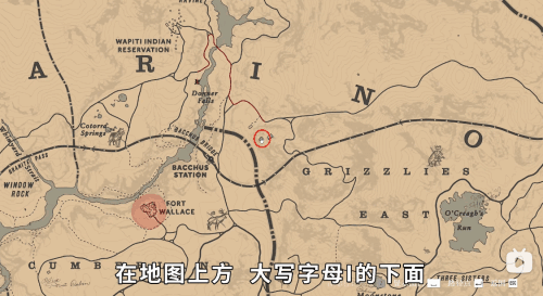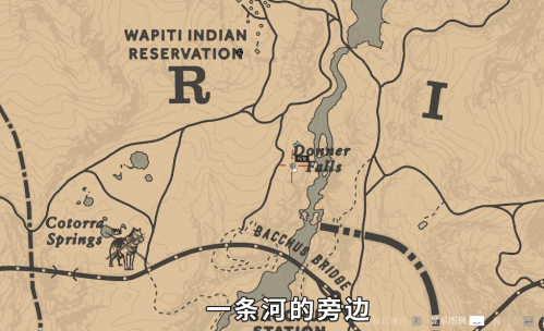 在印第安保留地下面,一条河的旁边,如图所示标点位置。