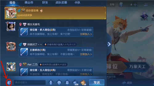 王者荣耀同城频道怎么发消息