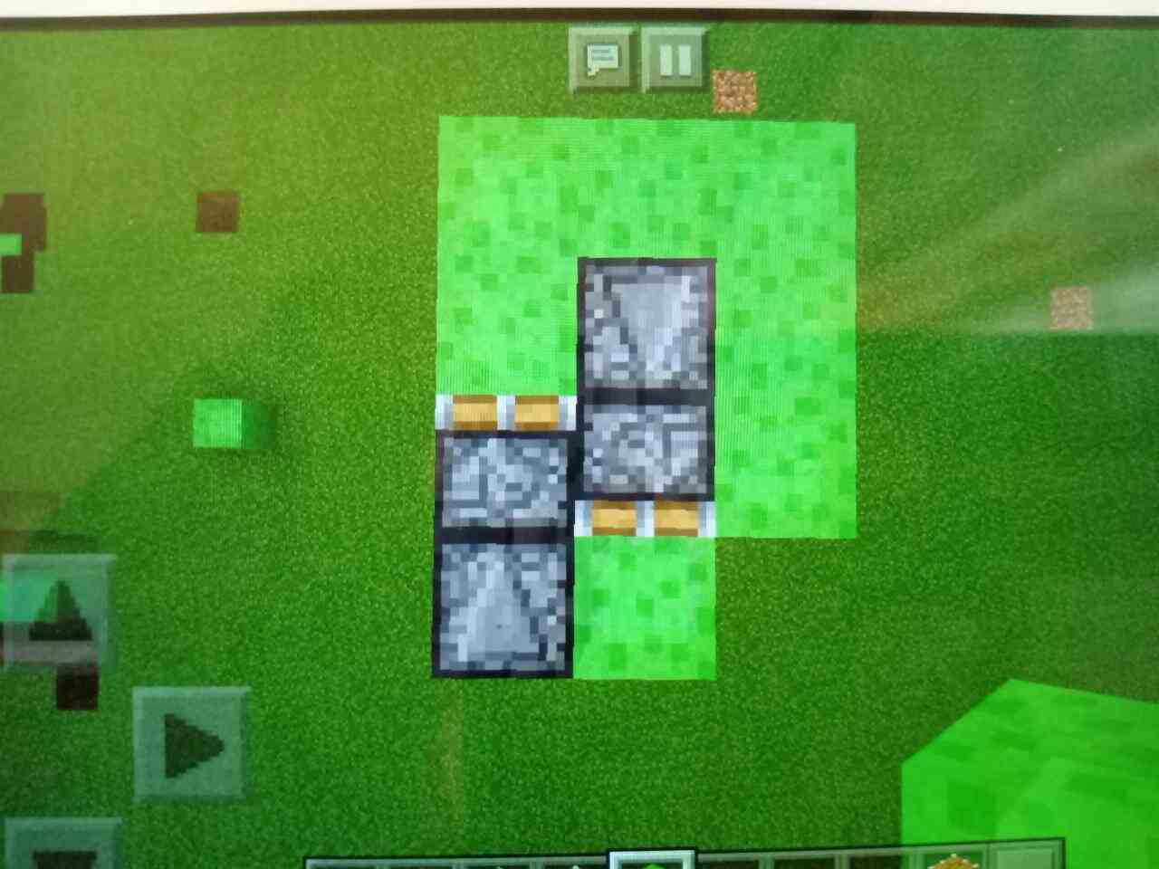 之后,在粘液块的侧面(无论哪个侧面都可以)放置一个箭头向后的观察者,再在后面放一个粘性活塞和两个粘液块。