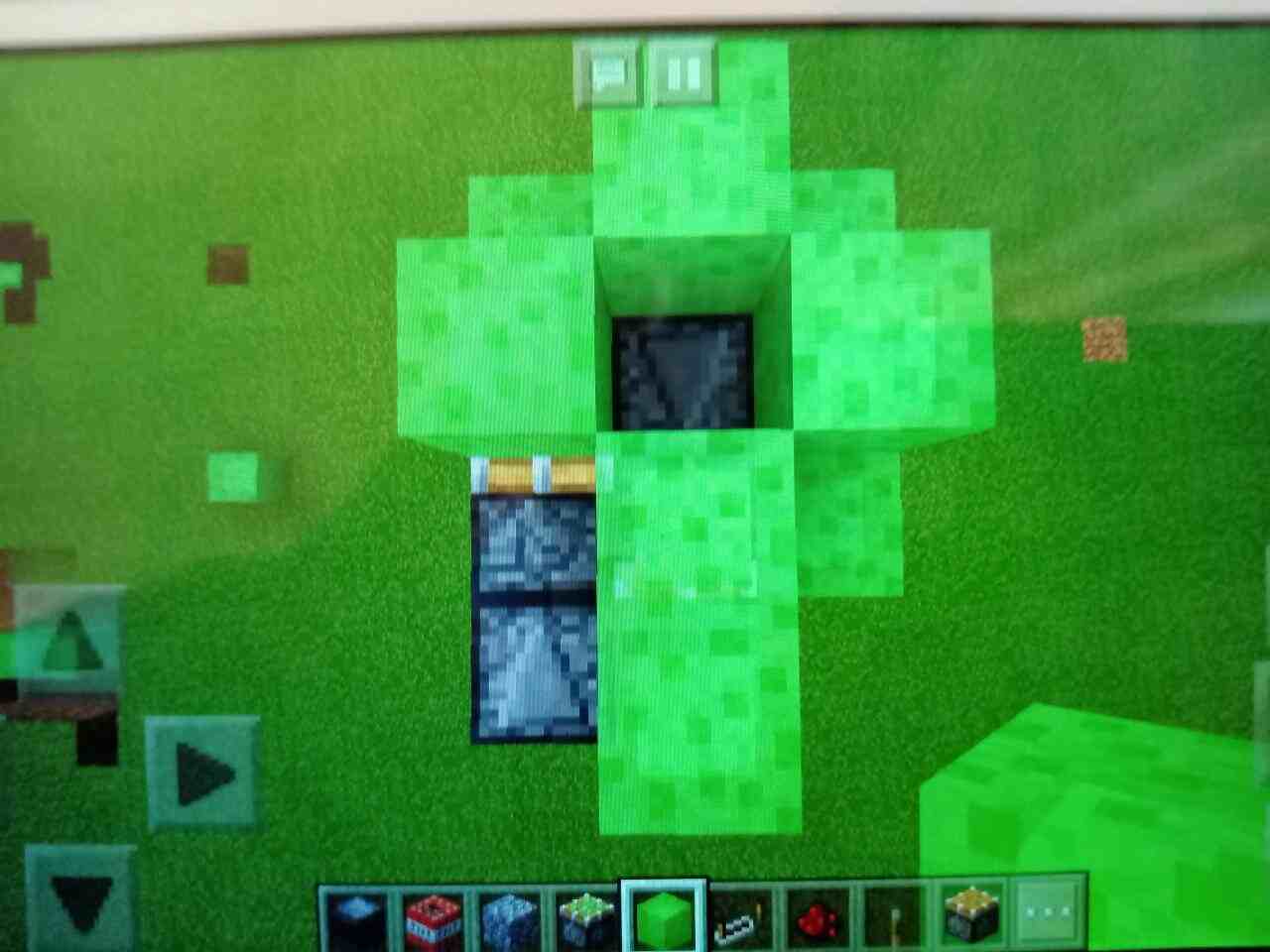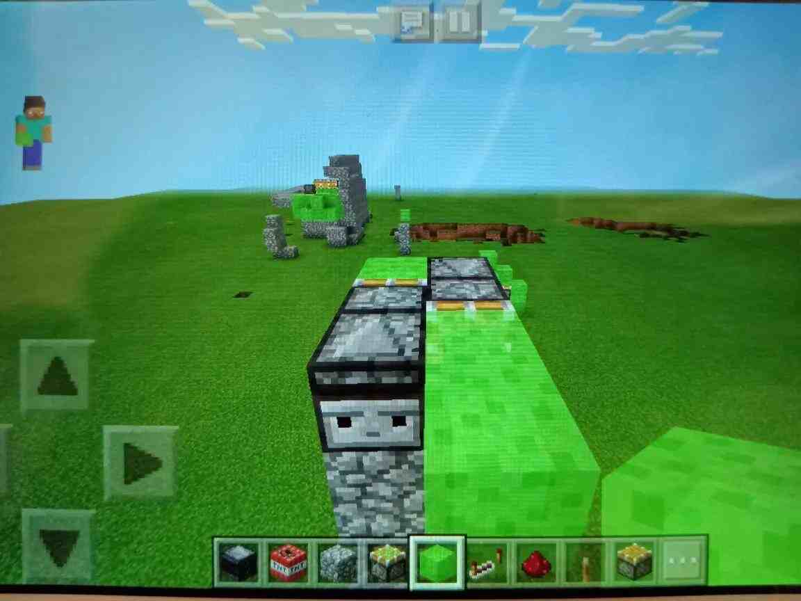 现在,只剩最后一个步骤了,用粘液块在飞行器上摆放成一个十字形,最后将十字形中间打掉,露出第一个放置的观察者就大功告成了。