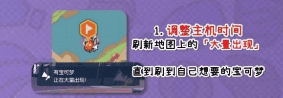 调整主机时间,刷新地图上的大量出现,要一直刷新,这个过程可长可短,要看自己运气,直到刷到自己想要宝可梦。