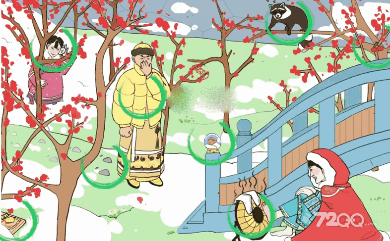 4、梅花树上有一只果子狸,右上角树上有樱桃,上述就是8处不和谐的地方