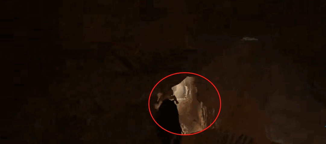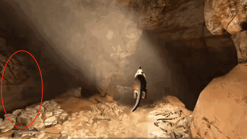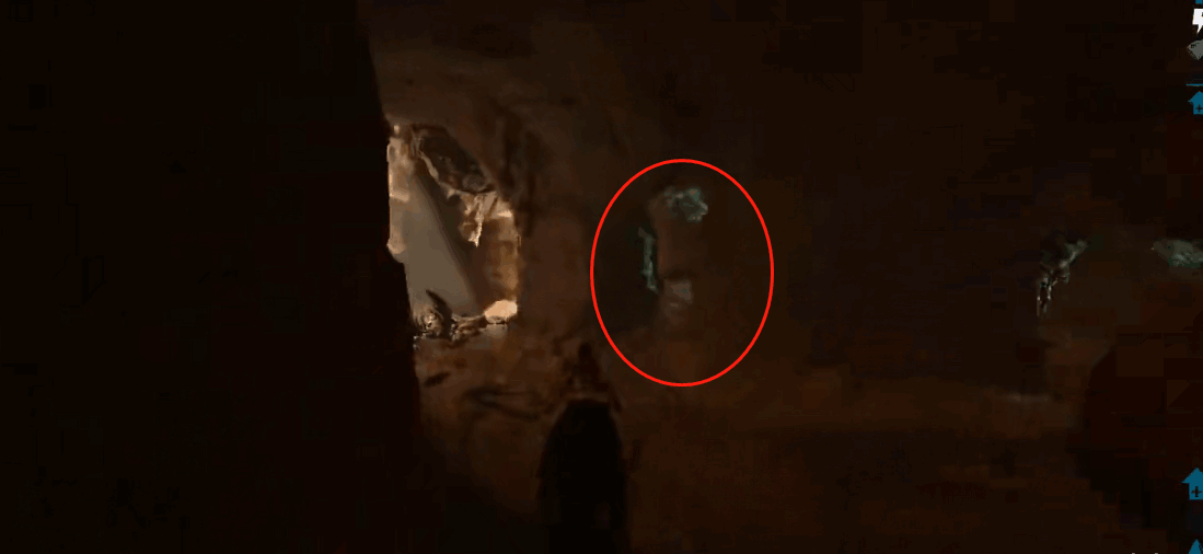 5、之后一直向前,出来后看到一大片空间,可以在前方的小洞中看到岩壁神器,走过去将其拿去就好,具体坐标为35.1-28.0。