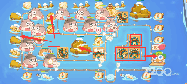5、最后我们要按照下图的放置放置炮塔,核心输出与是多憧憬可以解救被冰冻住的队友。