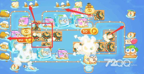 2、开局放置多重箭开图,出现粉色兔子需要提前锁定一下。