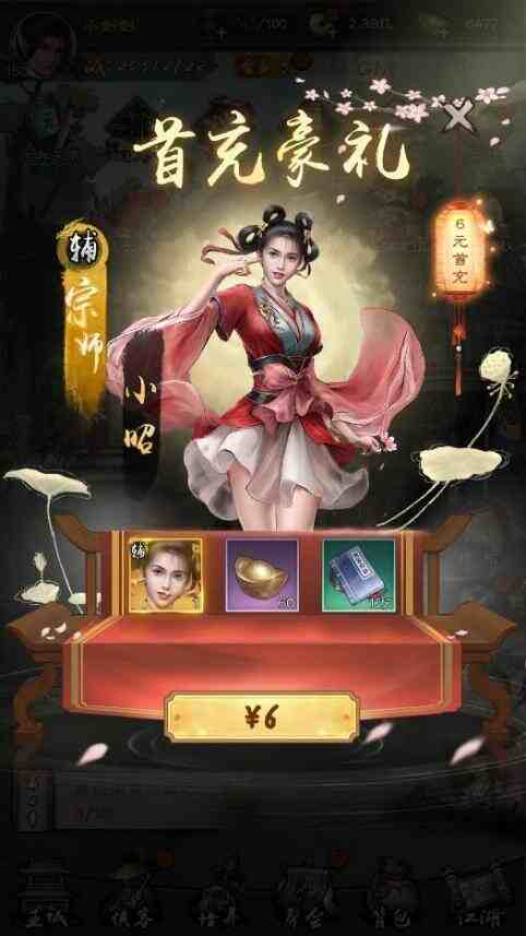 首充6元会直接赠送一个侠客:小昭,她的绝技是给友方攻击最高的单位增加2点怒气值,这样在首轮侠客绝技放完后,我方阵容攻击最高的单位就能比对方先施放第二次绝技,绝对是前期辅助大杀器。