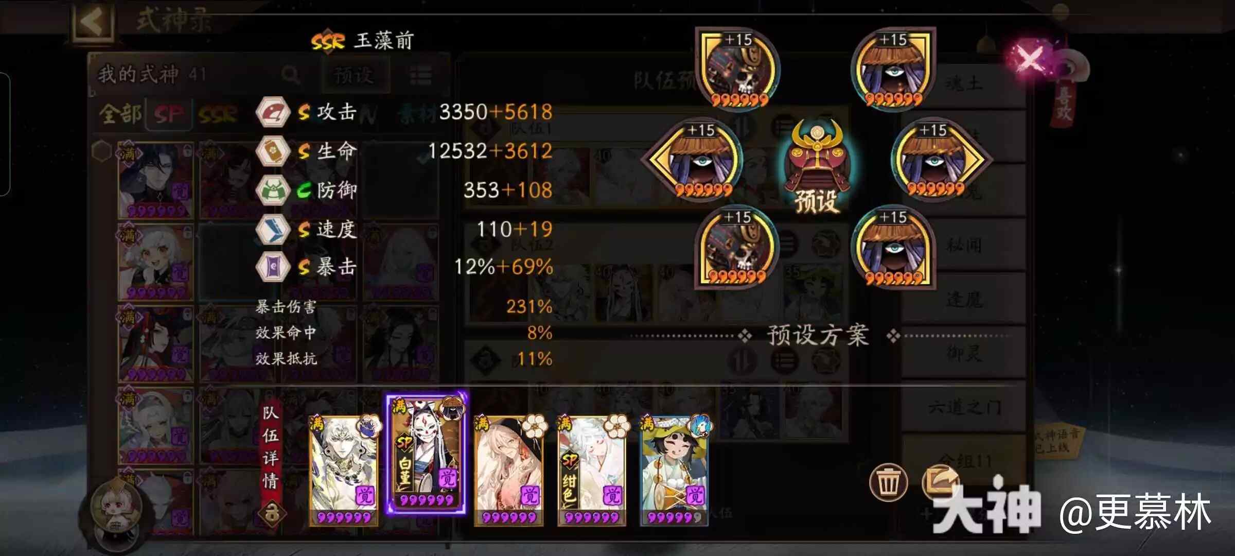 须佐之男>玉藻前>128>因幡辉夜姬,不见岳,铁鼠
