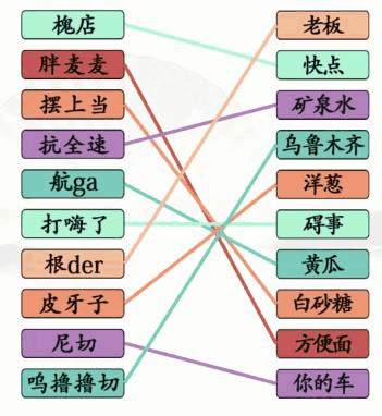 1、疆普难道是说新疆普通话吗?这一关难度不大,对照右边的很容易连出来