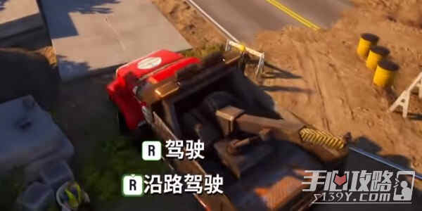 1、首先玩家需要驾驶这辆红色的吊车,选择沿路驾驶。