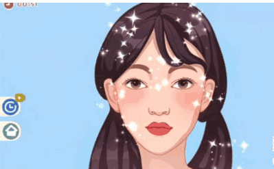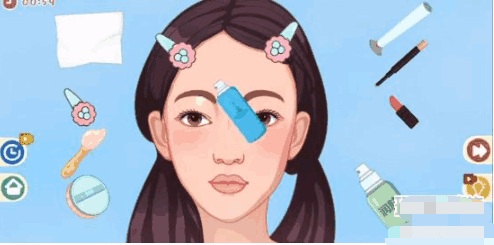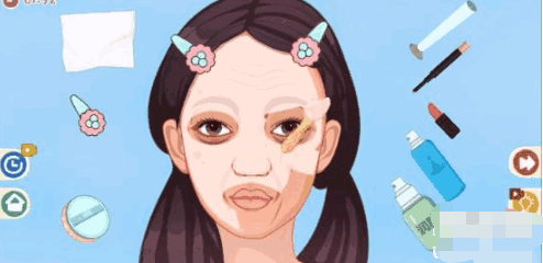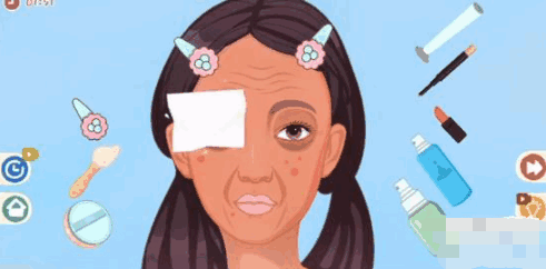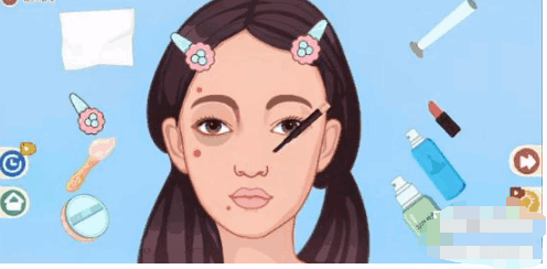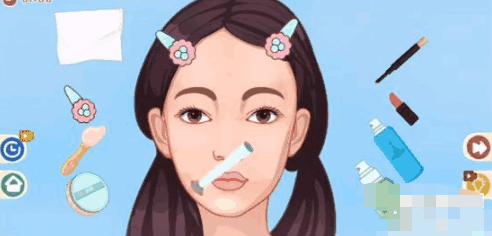 2、之后用左边第三个物品给女生涂上东西,再用右边的第二个物品将痘痘盖住。