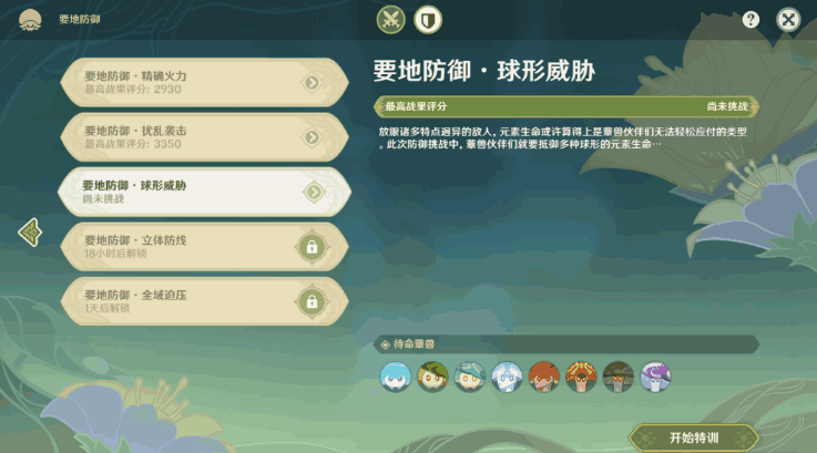 2、我们来到位置之后点击{球形威胁}从而点击开展特训。