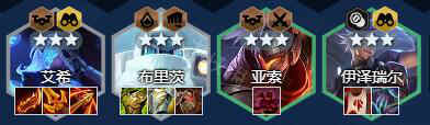 1、阵容构成:艾希+布里茨+雷克顿+卡蜜尔+亚索+伊泽瑞尔+薇恩+卡莎
