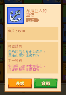 3、我们反击转换为连击效果的最关键的装备就是这一个神器--深海巨人的重锚,我们可以从图中看出这样神器的效果是“将你的反击效果转化为为连击效果,并且连击额外的提高百分之十一的属性”。
