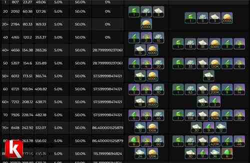 50级突破:60000摩拉、生长碧翡断片6、灭诤草蔓4个、劫波莲20个、荧光孢粉12个。