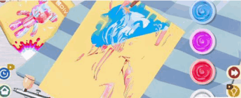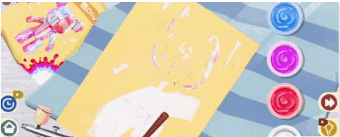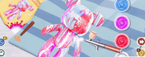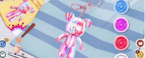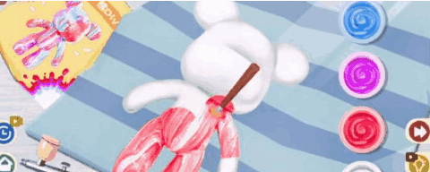 1、开始时我们拿起小熊玩偶,用画笔蘸右边的红色颜料涂到小熊的身上。