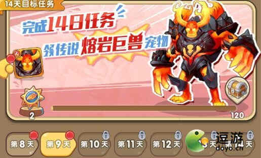 点击第一个“限时活动”,并且每日完成挑战任务,即可获得传说宠物大小姐的碎片,保底能合成一个大小姐,如果你能把14日任务全部完成,还能直接获得传说宠物熔岩巨兽,并且在完成任务的途中还有抽卡符石领取。