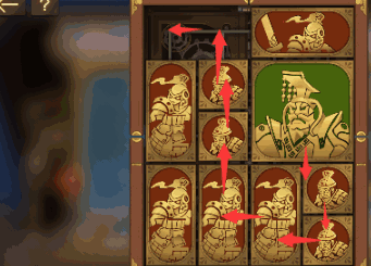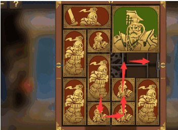 8、最后下方的长方形向上移动到底,就可以给将军留出通路,我们就能过关了。