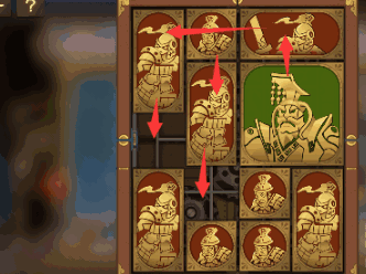 3、中间的正方形向左移动,下方的正方形向上移动,右下角的长方形向左移动,将军下方的正方形向下移动到底。