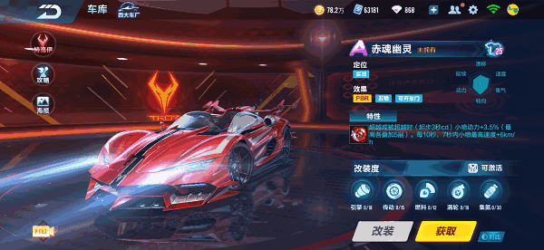赤魂幽灵主色调为火焰红,隶属于特洛伊工业的它,凌厉十足,锋利锐气的尾翼,炫酷大气;采用血影传动装置,将这台超跑的动力进行了全面的提升,是赛道之上神出鬼没幽灵一般的存在,定能引领新一轮的漂移狂潮,驾驶着它赤焰神力,车魂归一。