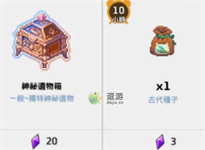 2.古代种子:3个紫水晶买1个,在前期可以适当的购买一点,用于洗练和追进度,但是后期也完全不建议购买;
