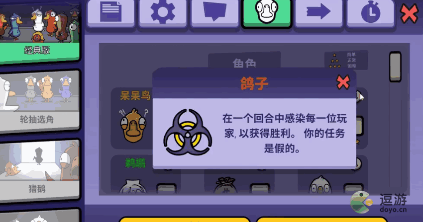 1、鸽子技能:在一个回合中感染每一位玩家以获得胜利,任务是假的