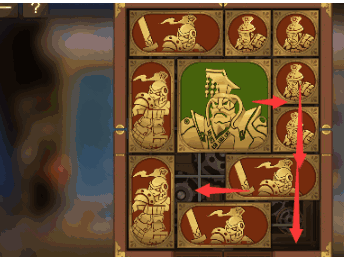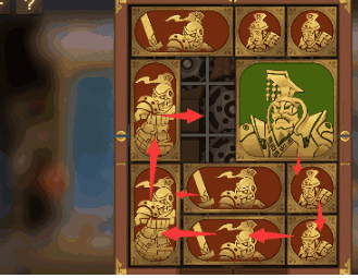 2、然后左上方的长方形向右移动,左下角的长方形向上移动,下方的两个长方形全部向左移动,右下角的正方形横着排列,将军向下。