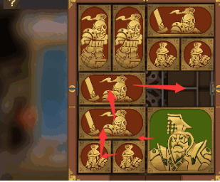 4、最后中间的长方形向右移动,其下方的长方形向上移动,左下角的正方形竖直排列,将军往左一格就可以完成本关。